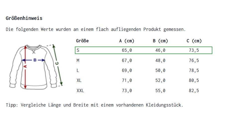 Nachgeschaut und etwas verwirrt gewesen. Größe M hat eine Armlänge (mit Schulter bis zum Bündchen) von 76,5 cm und wird je Größensprung um 2cm länger. Ich hab eine AL von 65cm… (169cm groß)