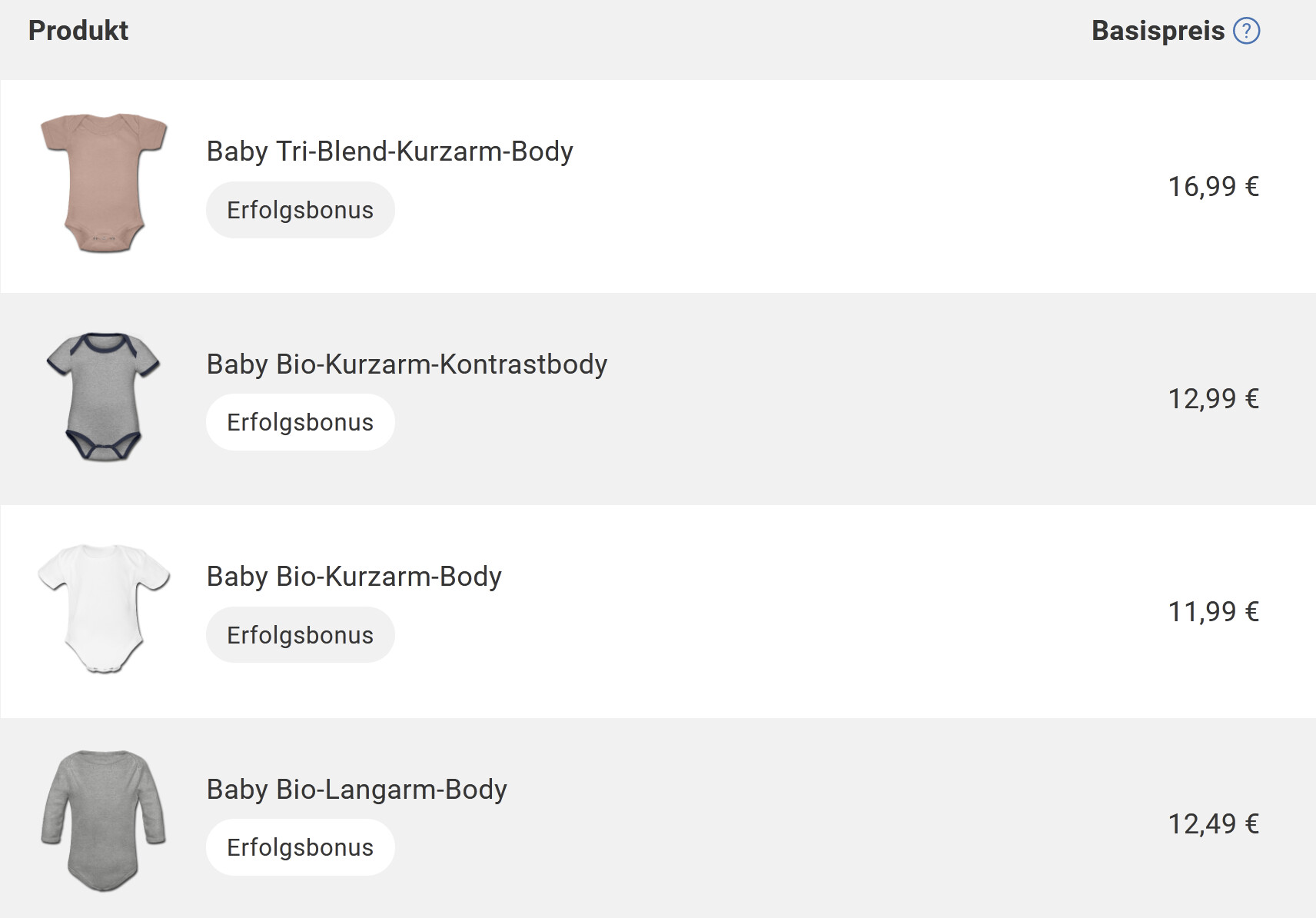 Die anderen 3 Bodies im Shop haben einen Basispreis von €10,99. Alle bio und 100% Baumwolle