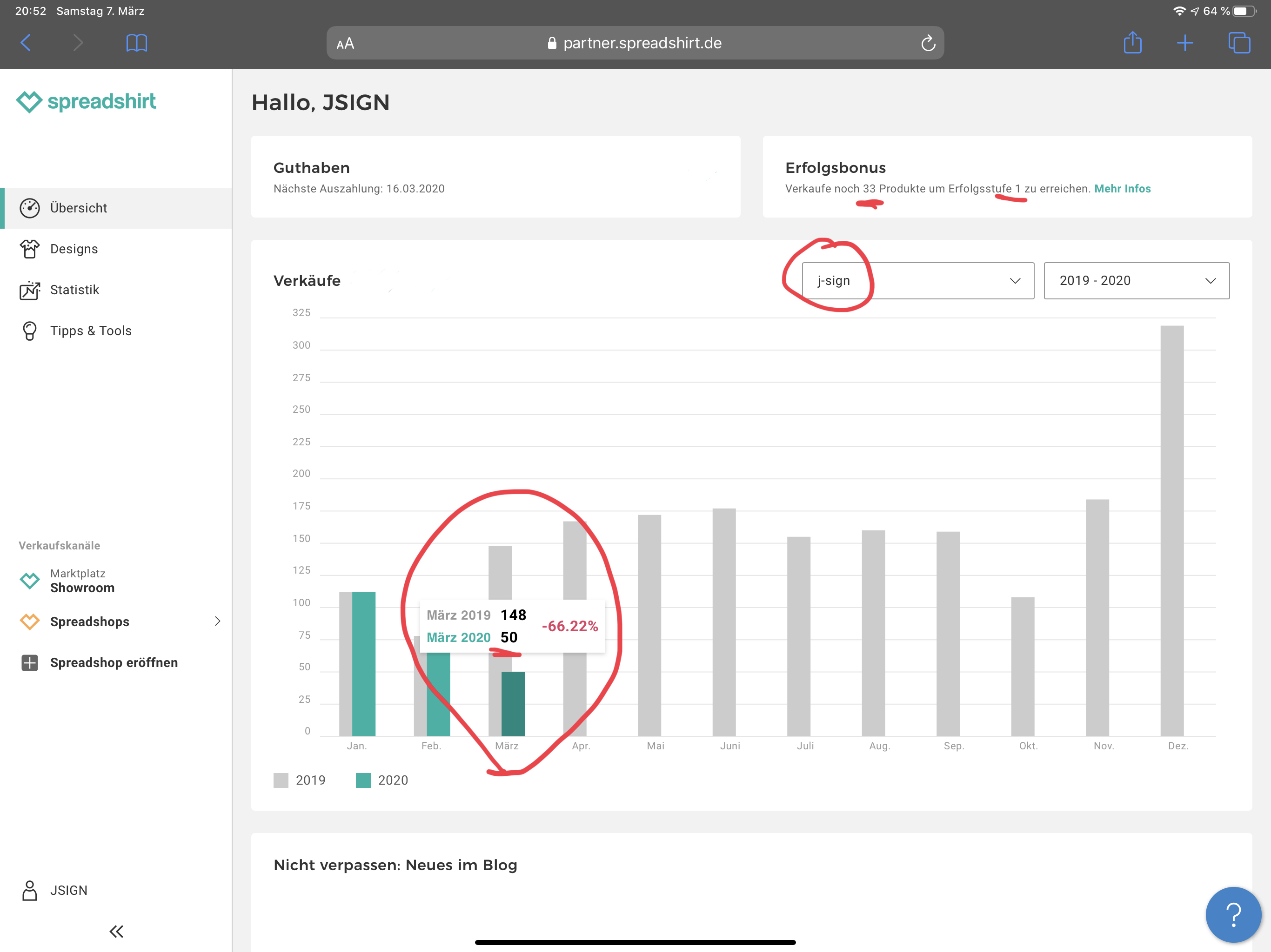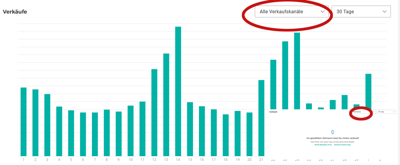 Ich kann seit einigen Tagen in der Desktopversion nur die Balken bei allen Verkaufskanälen sehen… bei Marktplatz oder einigen Shops sehe ich keine Balken, also ob nichts verkauft wurde