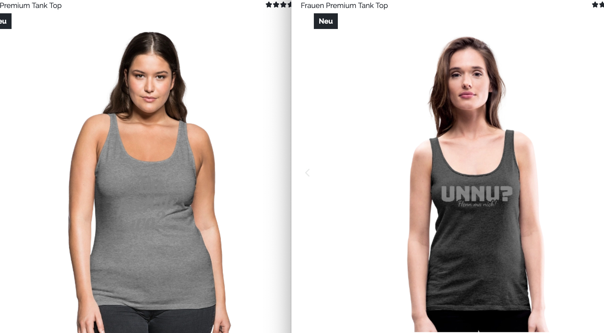 Welche Version der beiden Modelbilder ist jetzt farbechter? Also welches Anthrazit stimmt hier jetzt? Unabhängig davon sollten die Farben hier unbedingt auf den gleichen Farbton abgestimmt sein, denn der Kunde bekommt beim anthraziten Premium Tank Top garantiert nicht das was er erwartet, je nachdem welches Modelbild gezeigt wurde.