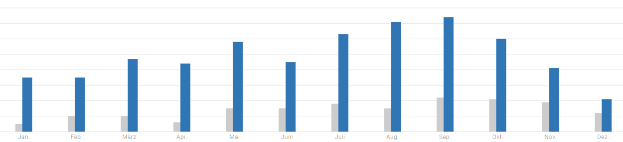 Hier sieht man nicht nur den Niedergang in absoluten Zahlen, sondern auch den Vergleich zum Vorjahr. Während sich bis September die Umsätze fast verdreifacht haben, schaffe ich im Dezember kaum noch das Vorjahr. Also bitte mal an die Fakten halten, denn so ergeht es vielen.