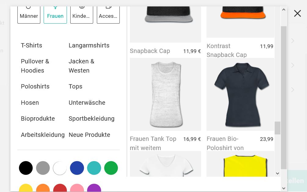 Meine Produkte sind - z.B. bei den Frauen. Völlig durcheinander gereiht und als zweites Produkt wird mir gleich die Schürze angezeigt! (Soll das ein Hinweis sein?)