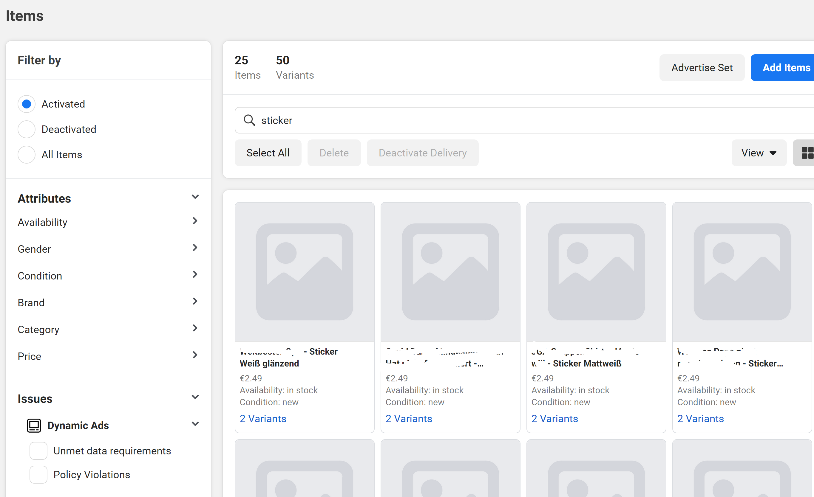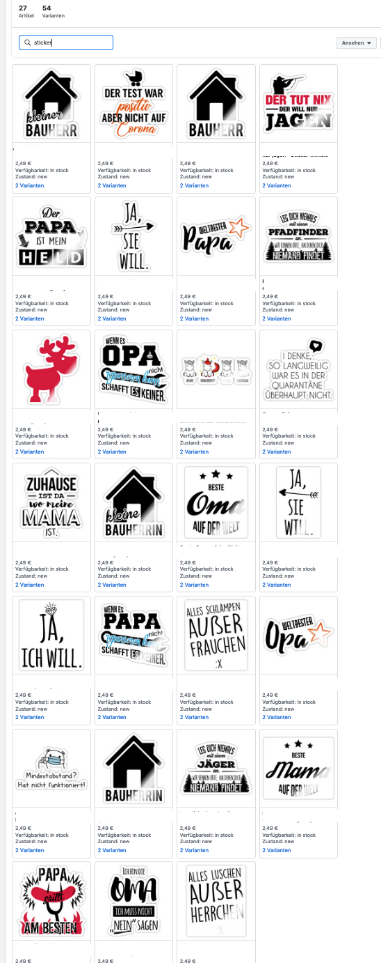 Im Facebook-Feed der Shops fehlen die Stickerbilder.