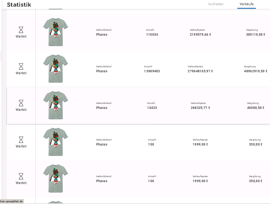 Seht euch mal die Verkaufszahlen an, und der Shot zeigt nur einen Ausschnitt der ganzen Bestellung