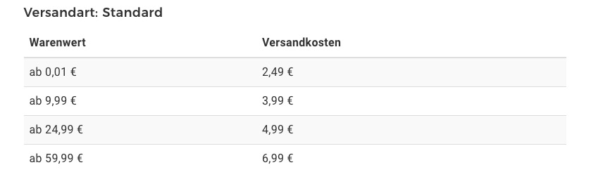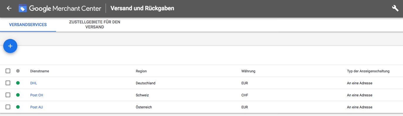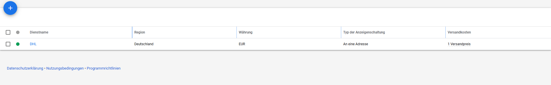 Im GMC selbst fütterst du, wie bereits richtig gemacht, noch ein paar Daten für den Standardversand nach. Hier reicht es einfach, diese Tabelle im GMC einzupflegen, ein paar Daten zu deinem “Unternehmen” zu hinterlegen und fertig.