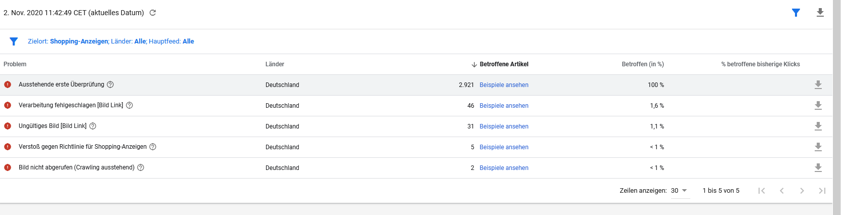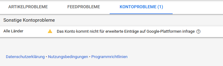 Dort siehst du, ob deine Produktdaten korrekt sind und was ggf. klemmt.