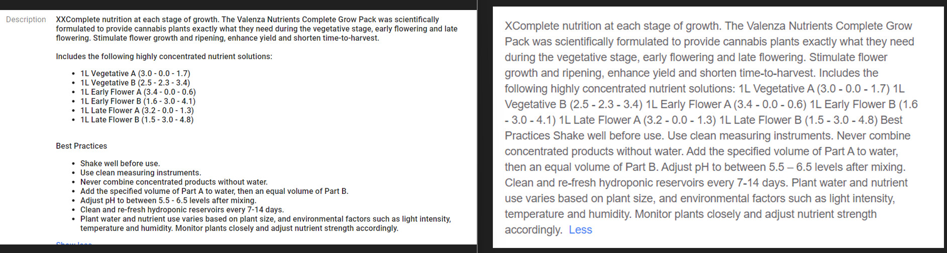 I am trying to change the formatting of my product descriptions. I want to use the supplementary feed. I created html formatting and put it into a google sheet. It works well in the google merchant product description, but when I look at the results in google shopping the formatting is not there anymore.