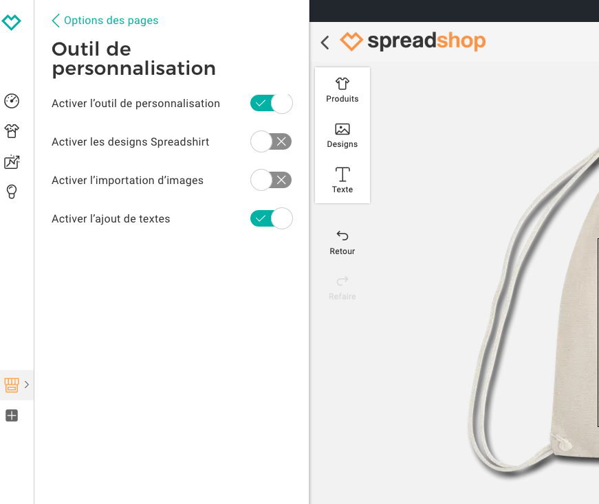 Merci beaucoup. Est-ce possible que le graphisme créé ne soit pas à la disposition libre du client mais qu’il soit vendu une fois pour toute avec un emplacement définitif sur des t-shirt pour que le client ne puisse pas changer la composition ? c’est à dire : est-ce qu’on peut désactiver cette possibilité que vous m’avez montré dans votre précédente réponse ?