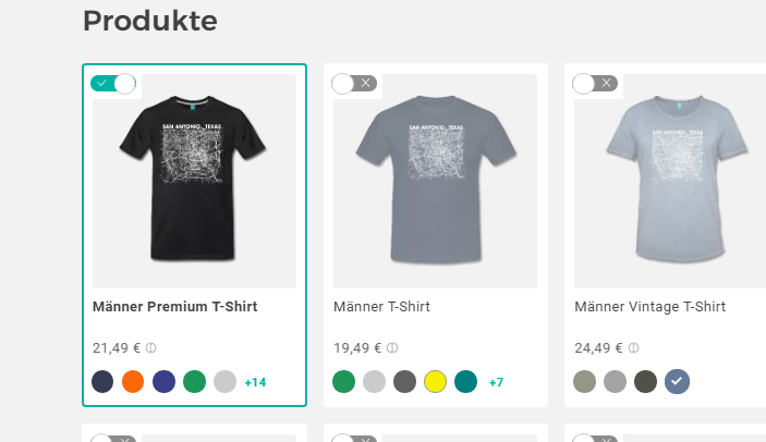 Zu 3, dein Motiv wird auf allen Produkten angezeigt, aber es sind höchstwahrscheinlich nicht alle Produkte aktiviert. In dem Bild unten ist nur das Premium aktiviert, erkennabr an dem Häckchen, die anderen beiden nicht.