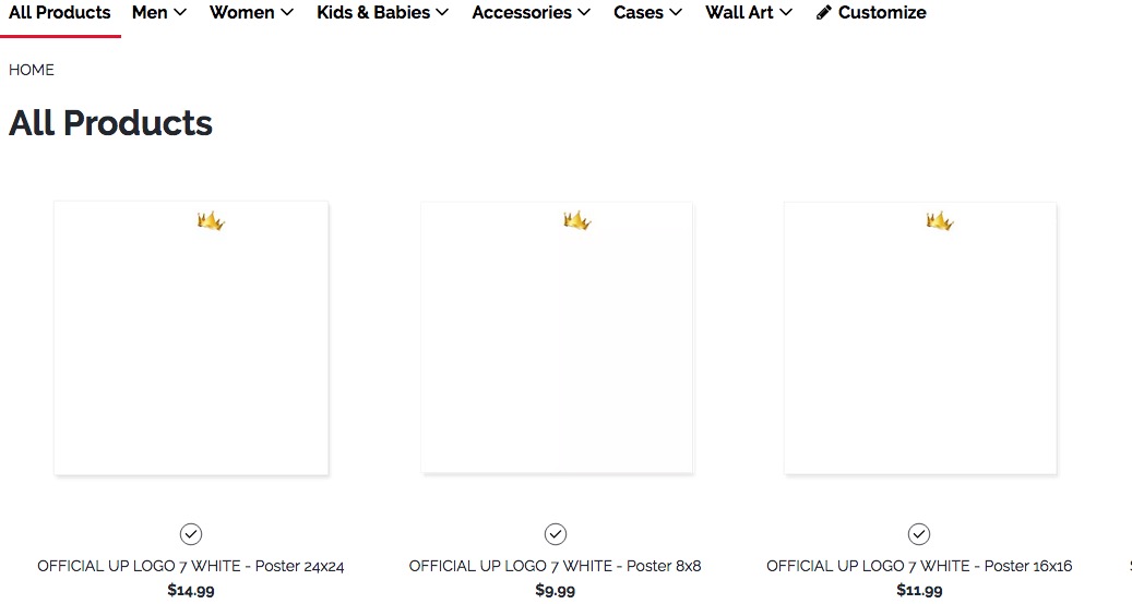 When visiting your second merch shop, I can see that you have placed a white design on a white poster template. Posters have a white background as default, therefore you should fill them up with some colored designs