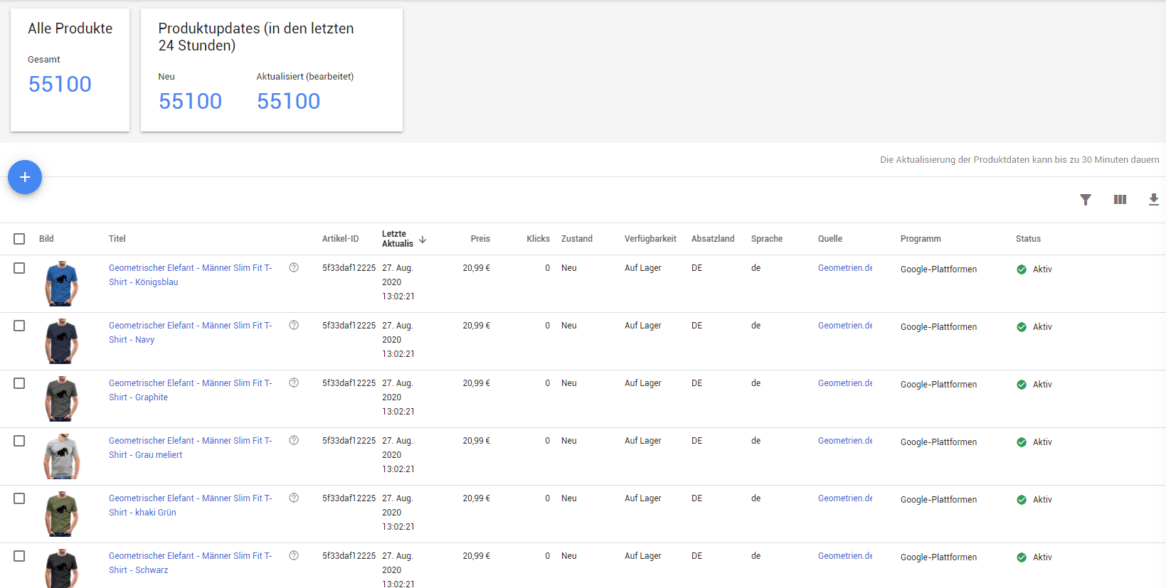 Danach habe ich mit dem Product Feed die Produkte bei Google Merchant Center hinzugefügt. Die wurden aber nach ein paar Wochen alle wieder abgelehnt…