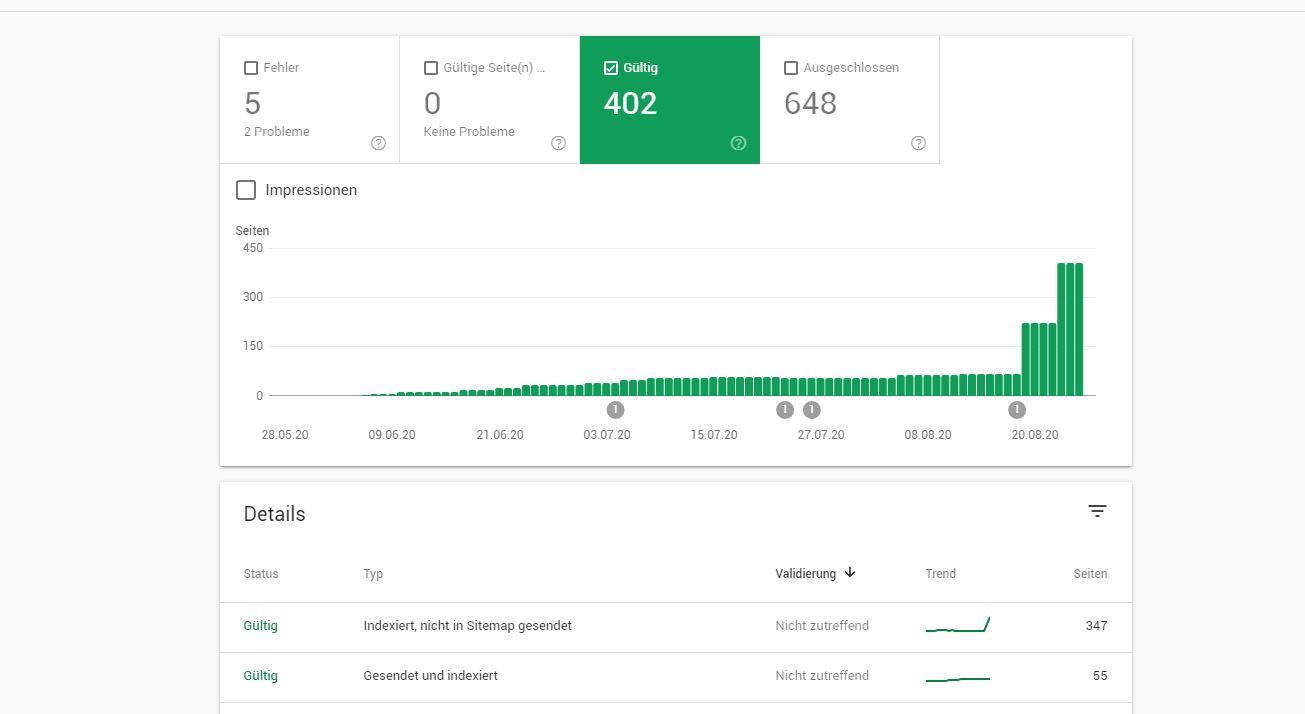 Zuerst habe ich manuell ca. 20 Produkte mit 20 verschiedenen Motiven bei der Search Console geprüft/hinzugefügt.