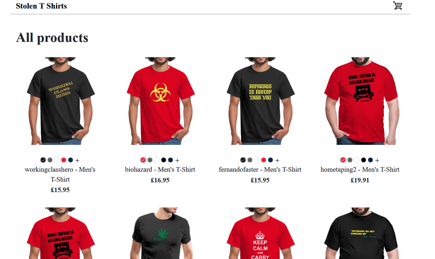 on a content page in Wordpress. Now each product page just shows "This product is not available"Looking at the products in my shop (in the admin area) some of the T shirts have the designs on the back, all in the wrong colours.