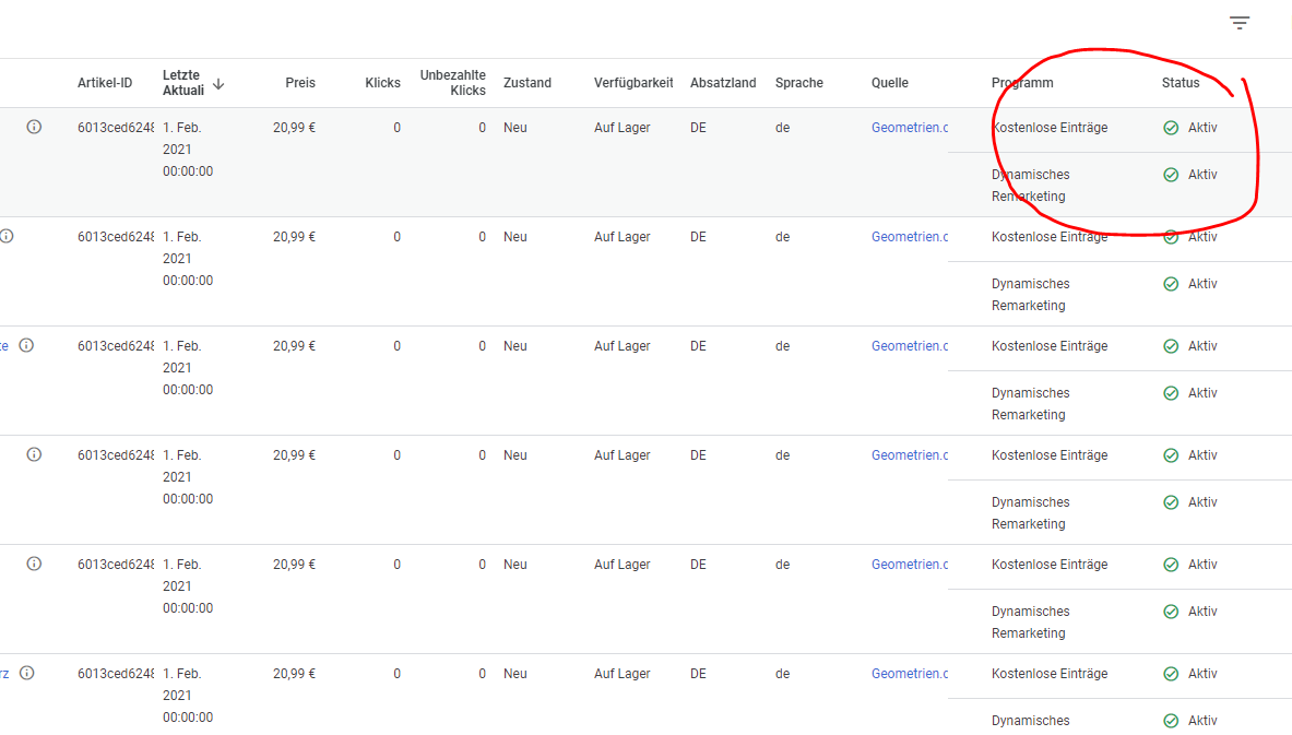 Deine Produkte müssen also 1) von Kunden auf der Shopping Plattform gesucht werden und B) dort gegen Bezahlwerbung konkurrieren.