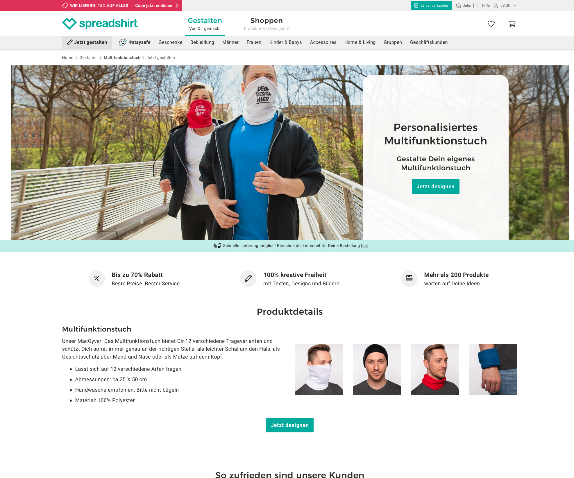 Das Multifunktionstuch gibt es im Moment noch nicht in den Shops oder auf dem Marktplatz, weil es mit Flexdruck bedruckt wird.