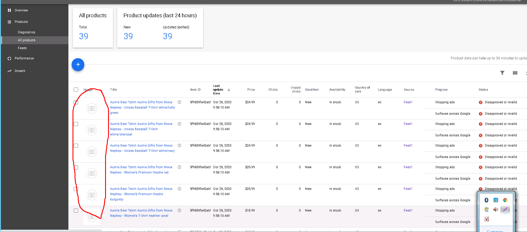 I have uploaded my products to merchant center. But my merchant center account cannot display the images. It is reporting core, can anyone explain to me why not. Where is it faulty?