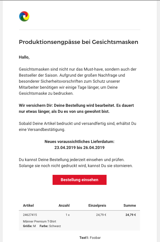 Bekommen alle Maskenbestellungen diese Mail, die noch den Status “Neu” haben?