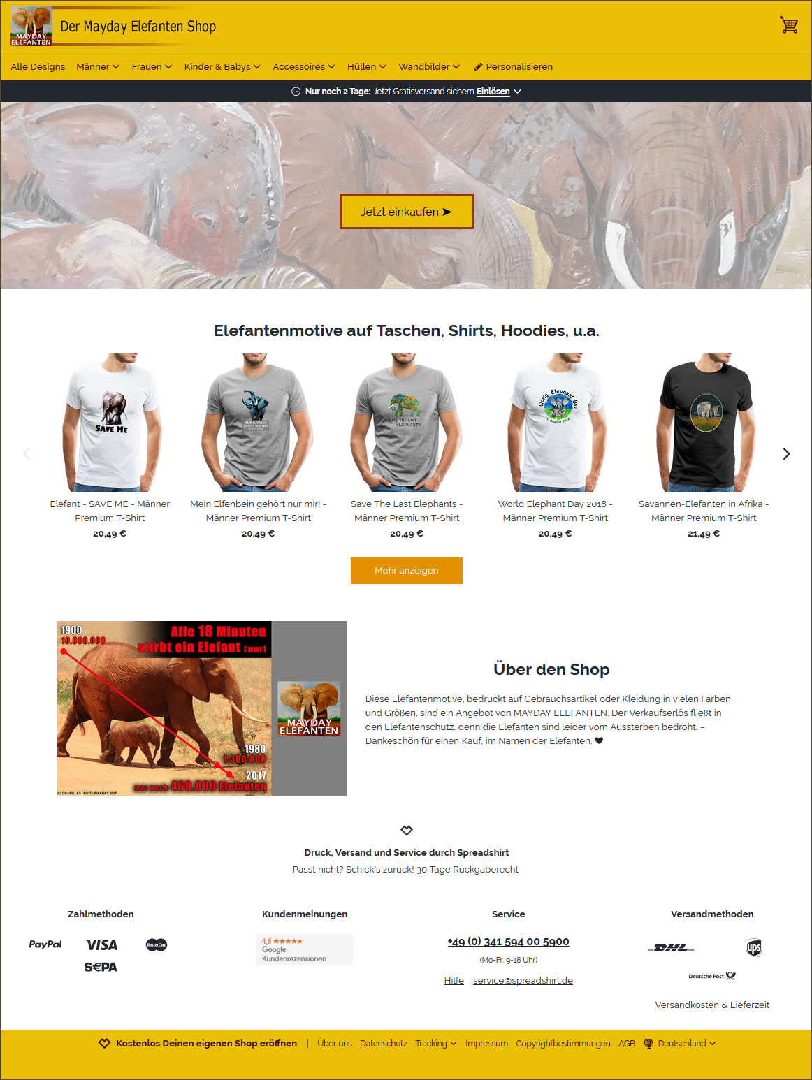 Ja, klar. Danke, dass Ihr überhaup nachgeschaut habt. Ich versuche jetzt, die Seite wieder, so gut es geht, auf den ursprünglichen Zustand zu versetzen, was allerdings nur ohne Header-Bild geht, da Ihr ja verhindert, dass man dann anstelle der doch arg eingeschränkten Produktvorschau alle Designs anzeigen kann.