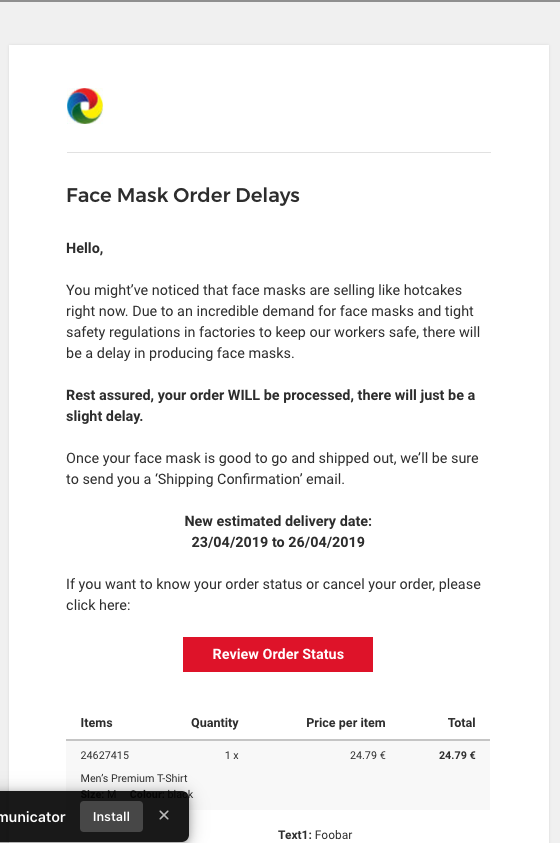From today onwards your customers will also receive this mail: