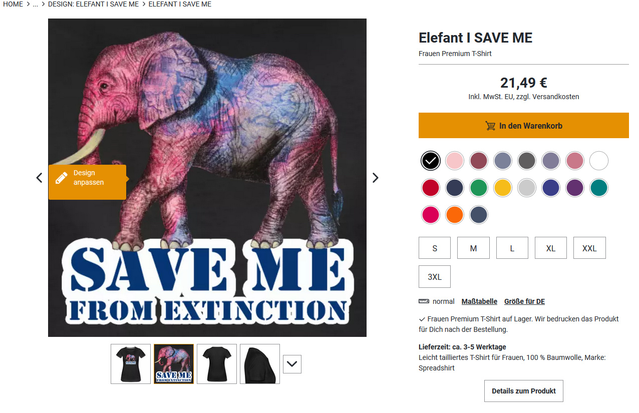 … aber das liegt NICHT an Facebook sondern leider an Spreadshirt. Und zwar wird das verlinkte Produkt immer komplett angezeigt, und so erscheint das Design ziemlich klein.