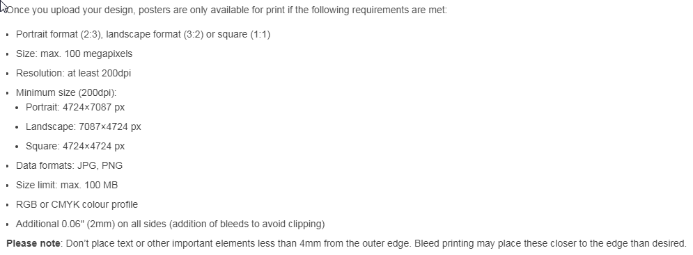 Your design is just too small. I attached a screenshot with the minimum requirements for posters. Please have a look and check the pixelsize of your designs. You’ll also find these information in your Partnerarea: Tipps & Tools>Poster templates