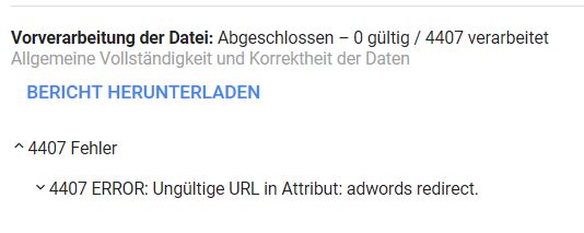ERROR: Ungültige URL in Attribut: adwords redirect.
