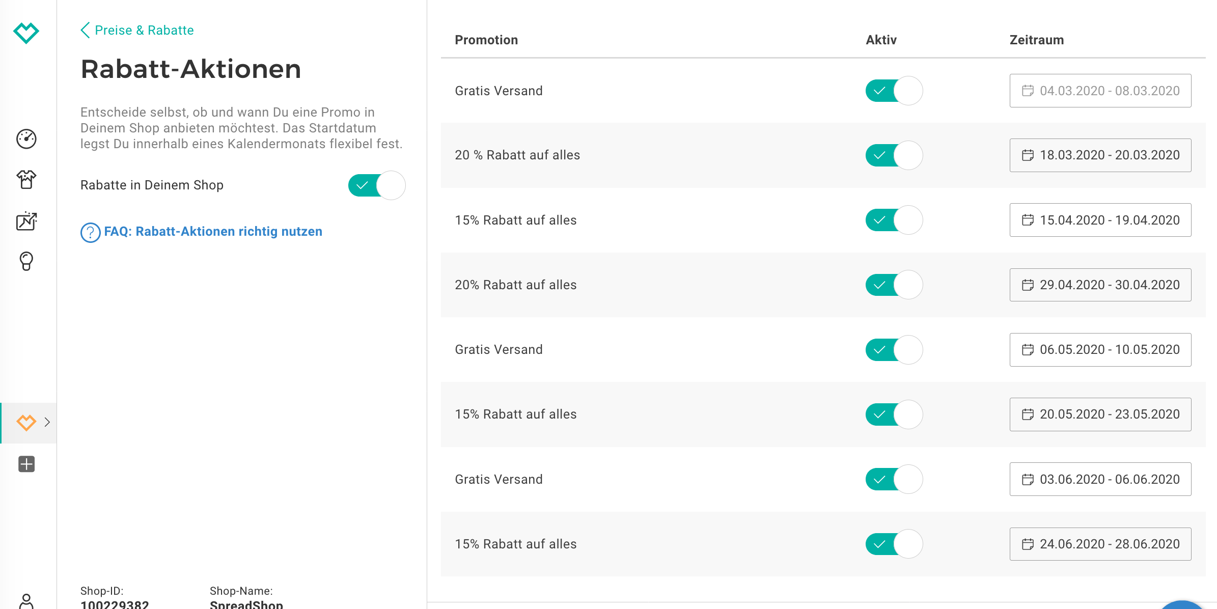 Als Teil der Einführung des neuen Vergütungsmodells findest Du nun alle Rabattaktionen für Deine Shops unter Preise & Rabatte in Deinen Shopeinstellungen.