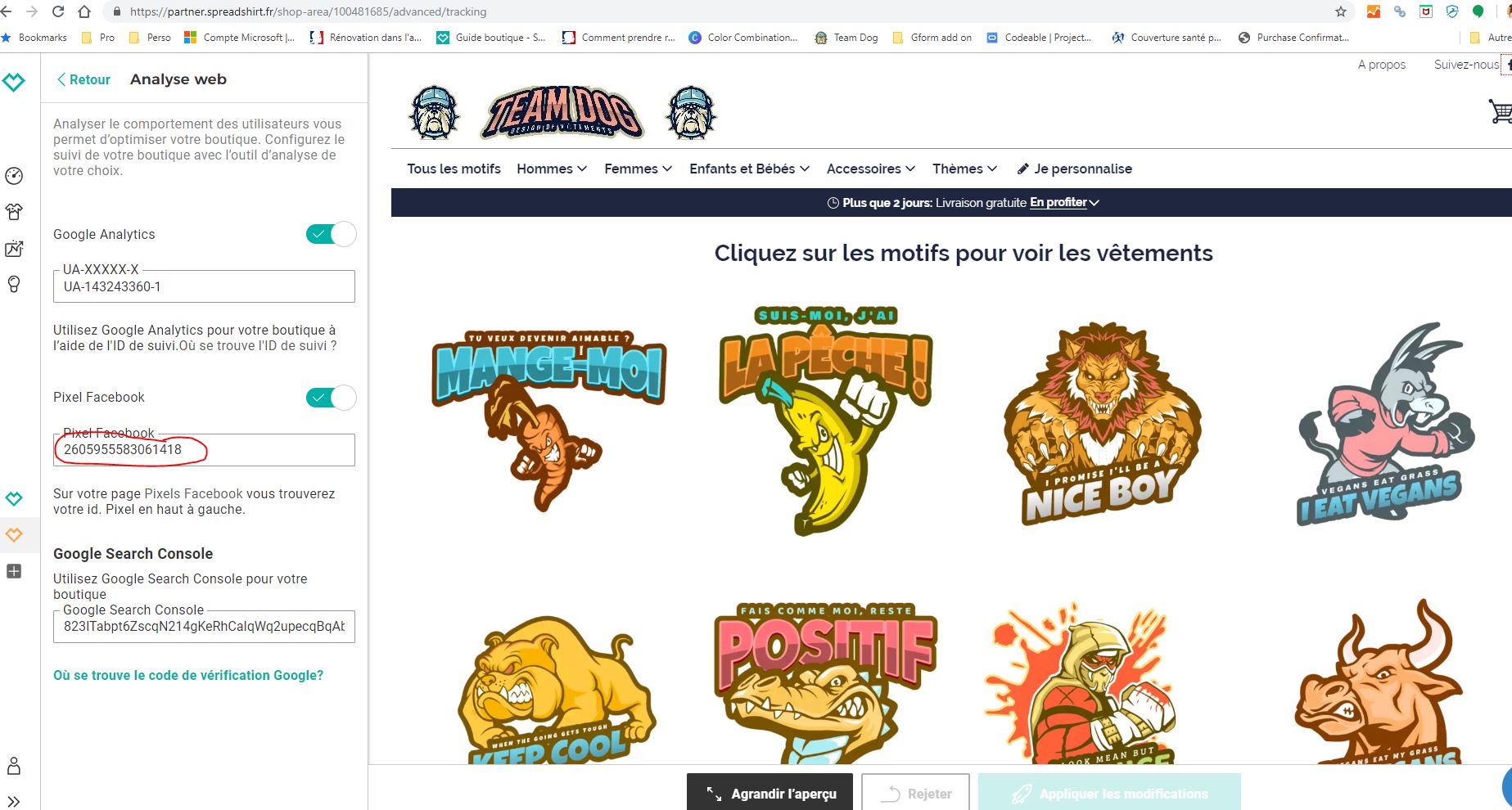 Désolé, je patauge et les informations sur cette page ne sont pas suffisantes https://help.spreadshirt.com/hc/fr/articles/115003743669-Analyse-web.