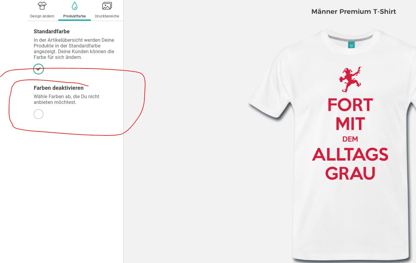 Wenn Du genau hinschaust ist das rote T-Shirt in der Liste davor ebenfalls ein “Männer Premium T-Shirt”, hier kannst du alle Farben an/abwählen. Es wurde ebenfalls angelegt weil es ein Produkt dazu in deinem alten Account gab.
