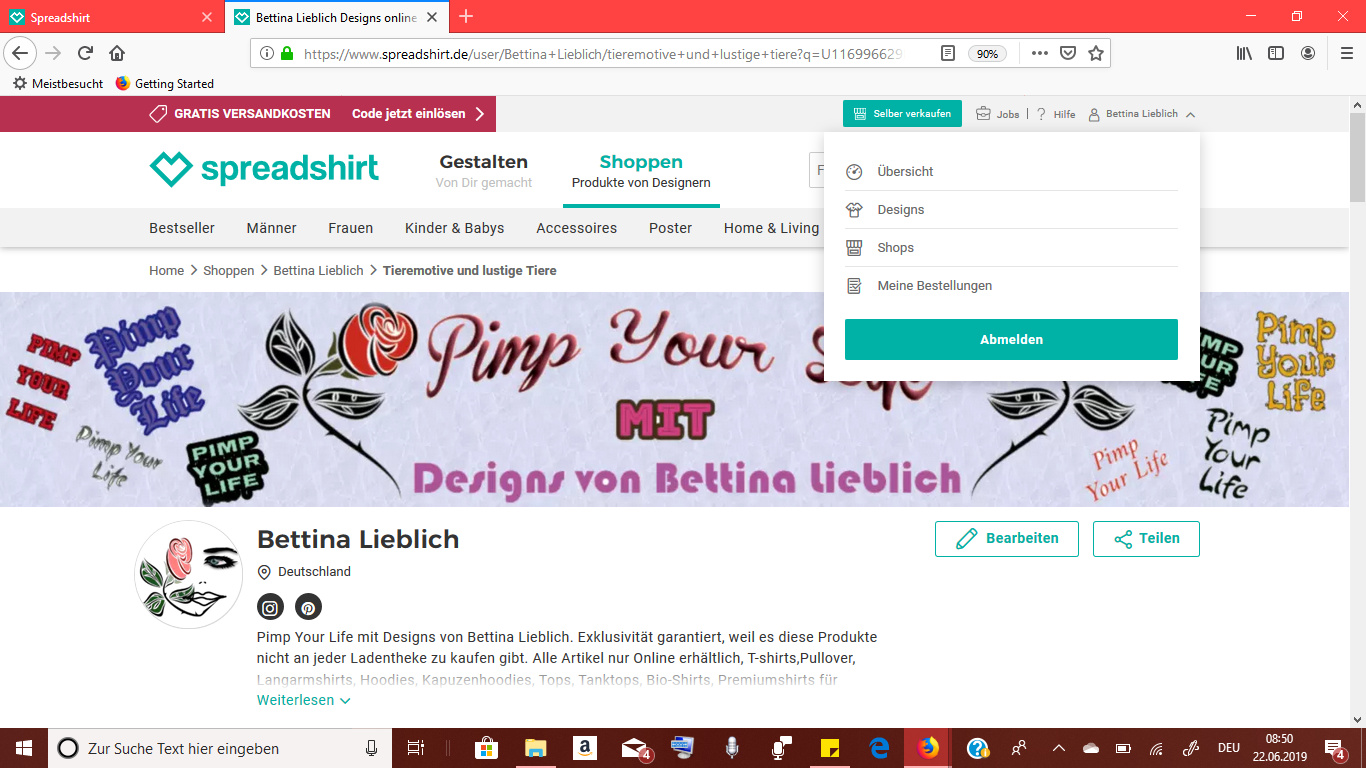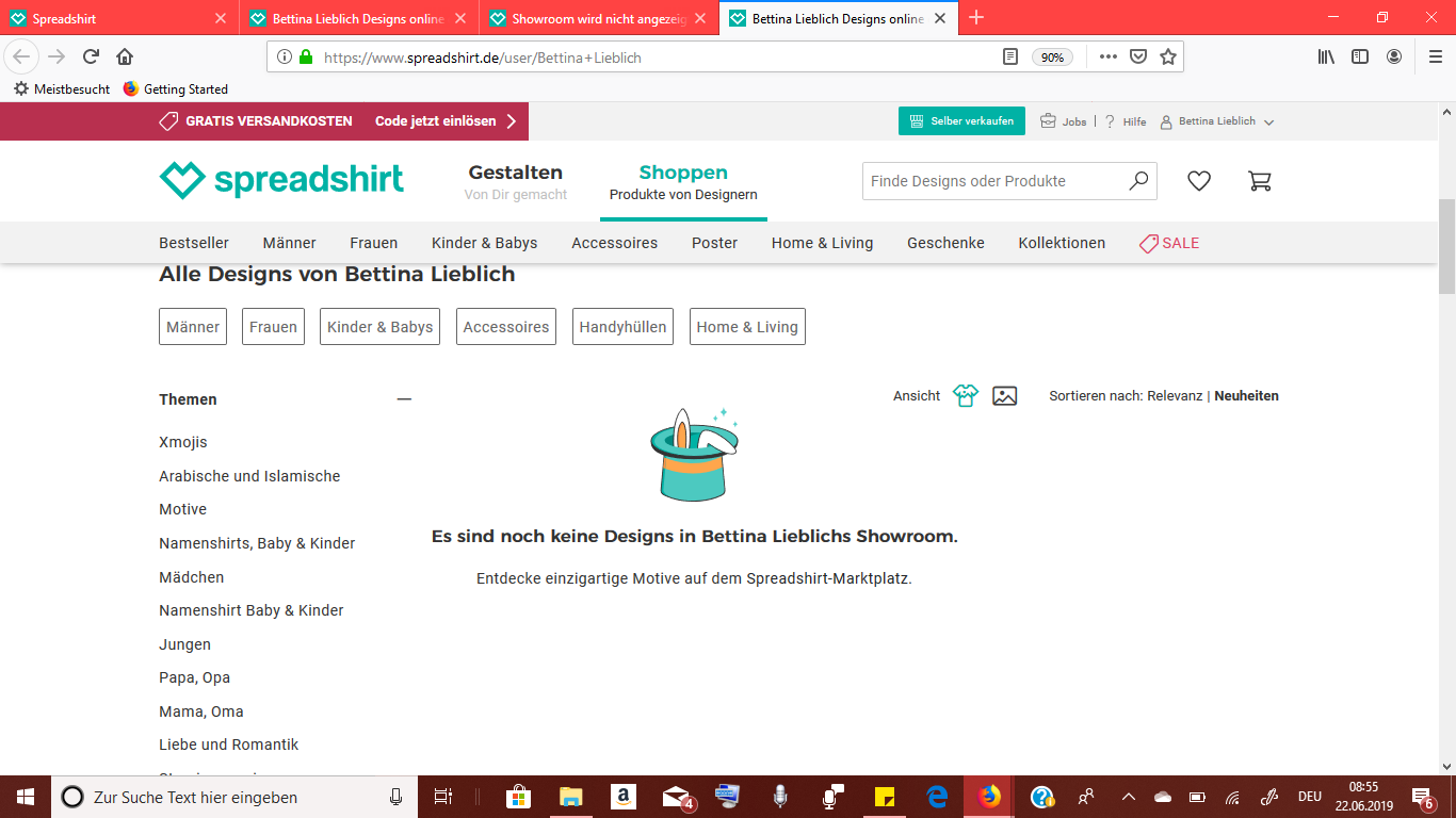 Wenn ich mein Profil anklicke, fehlt die Auswahloption für den Showroom, ich kann ihn auch nicht mehr über den Link aufrufen spreadshirt.de/user/bettina+lieblich
