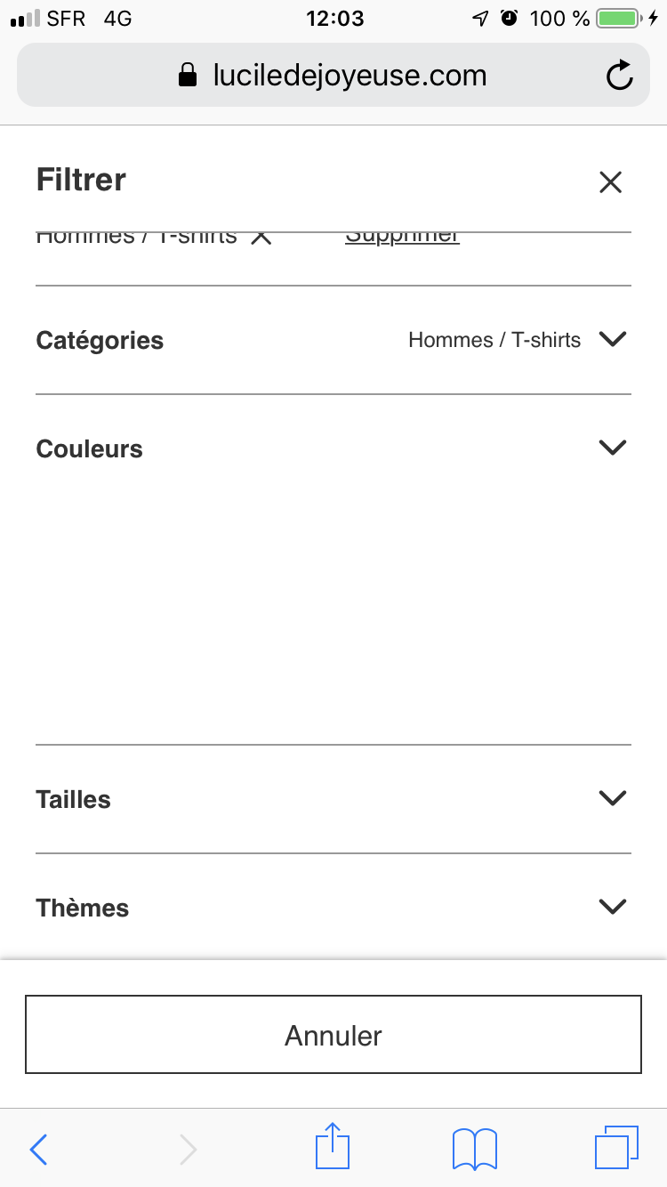 Les filtres d’affichage des Couleurs des Produits n’apparaissent plus dans la boutique aussi bien sur ordinateur bureau que smartphone.
