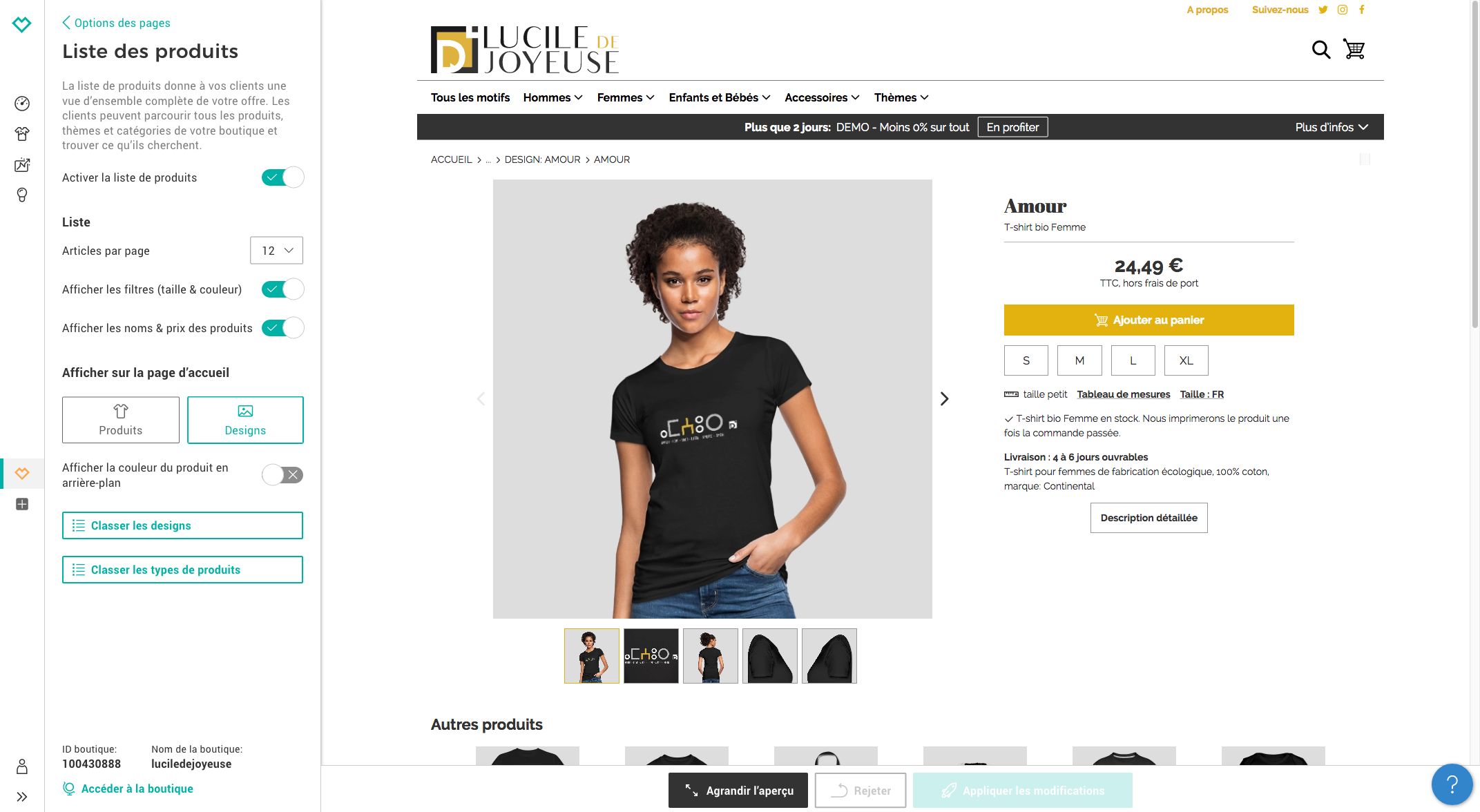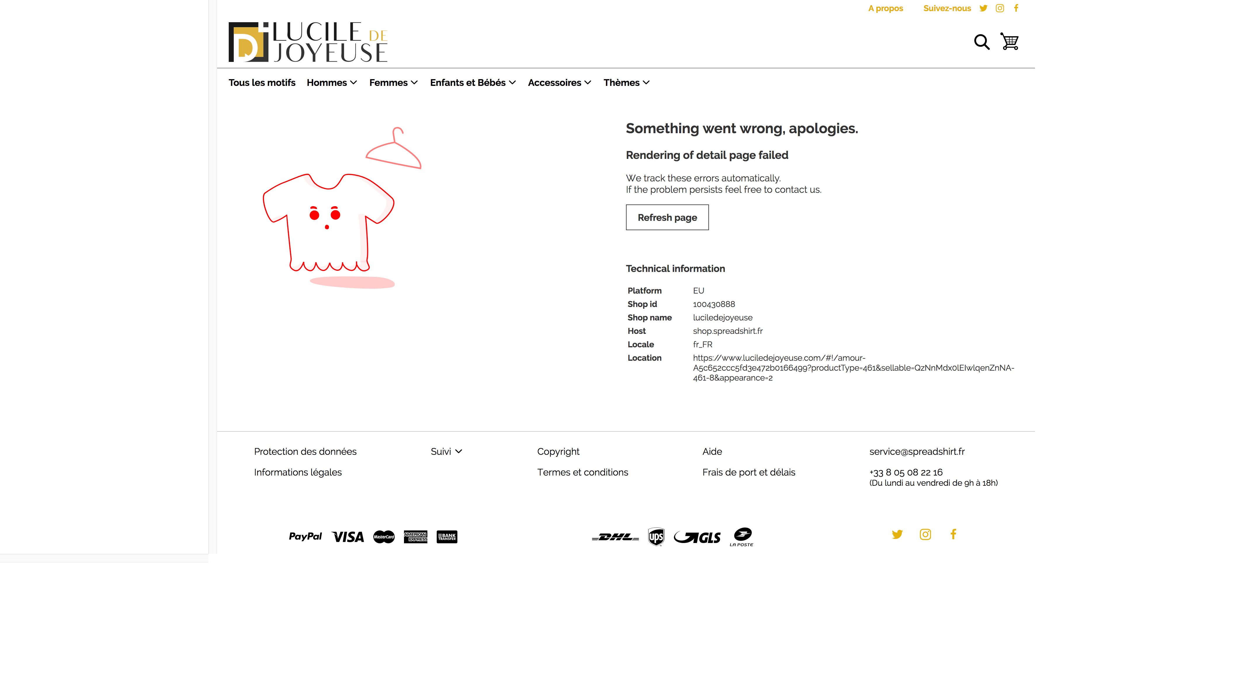 Depuis tout à l’heure, alors que cela fonctionnait parfaitement dans la matinée, les fiches produits détaillées (tous sans exception apparemment) ne s’ouvrent plus correctement dans ma boutique “luciledejoyeuse”.