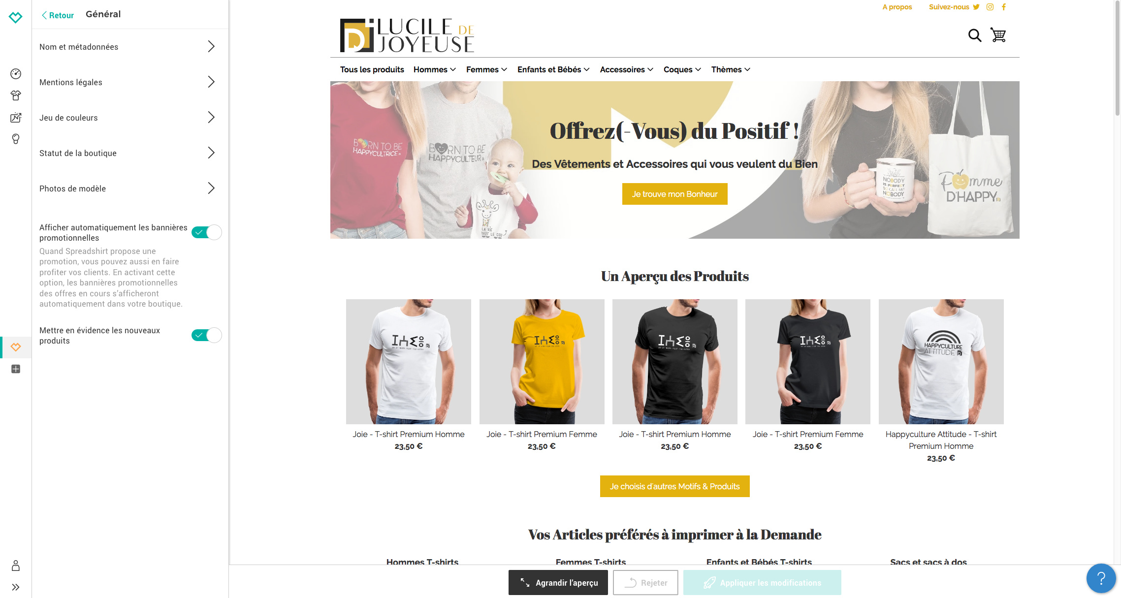 Or, j’ai fait la publicité autour de cet évènement promis du 13 au 17 juillet 2019 et ceci malgré l’activation du bouton “Afficher automatiquement les bannières promotionnelles” dans ma plateforme d’administration de la boutique partner.spreadshirt.fr : cf pièce jointe copie écran.