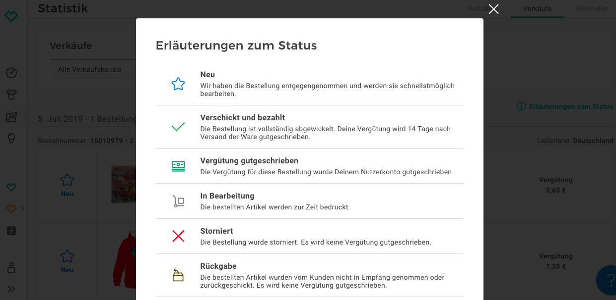 Bei der Übersicht, also beim Balkendiagramm und bei Statistik unter Verkäufe ist es auch nicht mehr. Eine Stornierung wird mir auch nicht angezeigt