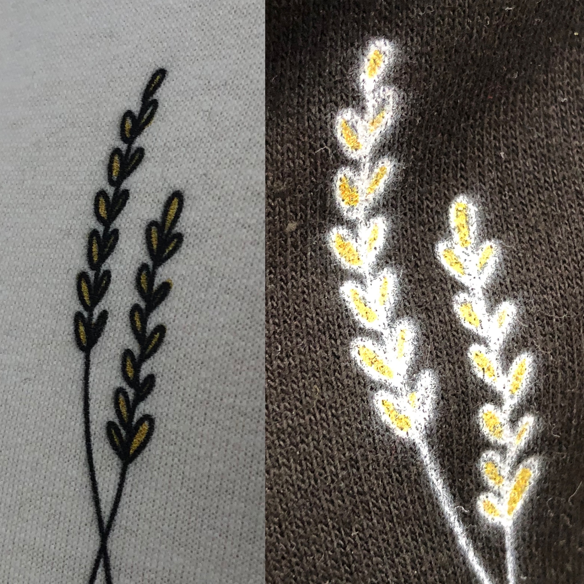 Gleichzeitig fragen wir uns, wieso unser weißes Design auf euren schwarzen Hoodies so schlimm aussieht, schicke Euch einfach mal den Vergleich zwischen schwarzem Design auf unserem Vanille Hoodie (ist top) und dem weißen Design auf dem schwarzen Hoodie (wie verwaschen) - wieso der krasse Unterschied?