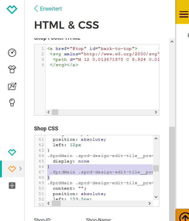 In meinen beiden Shops: 100119255 + 100115654 wird der Button “Willst du das Design anpassen?” nicht mehr angezeigt. Obwohl ich bei Erweitert > CSS nichts verändert habe.