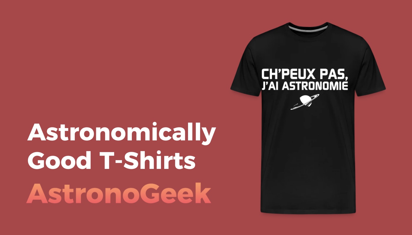 The AstronoGeek Spreadshop collects logos, slogans, and cool designs from his channel and offers them to his viewers on a wide range of different products – like this “I can’t, I have astronomy” T-Shirt on a plain black background.