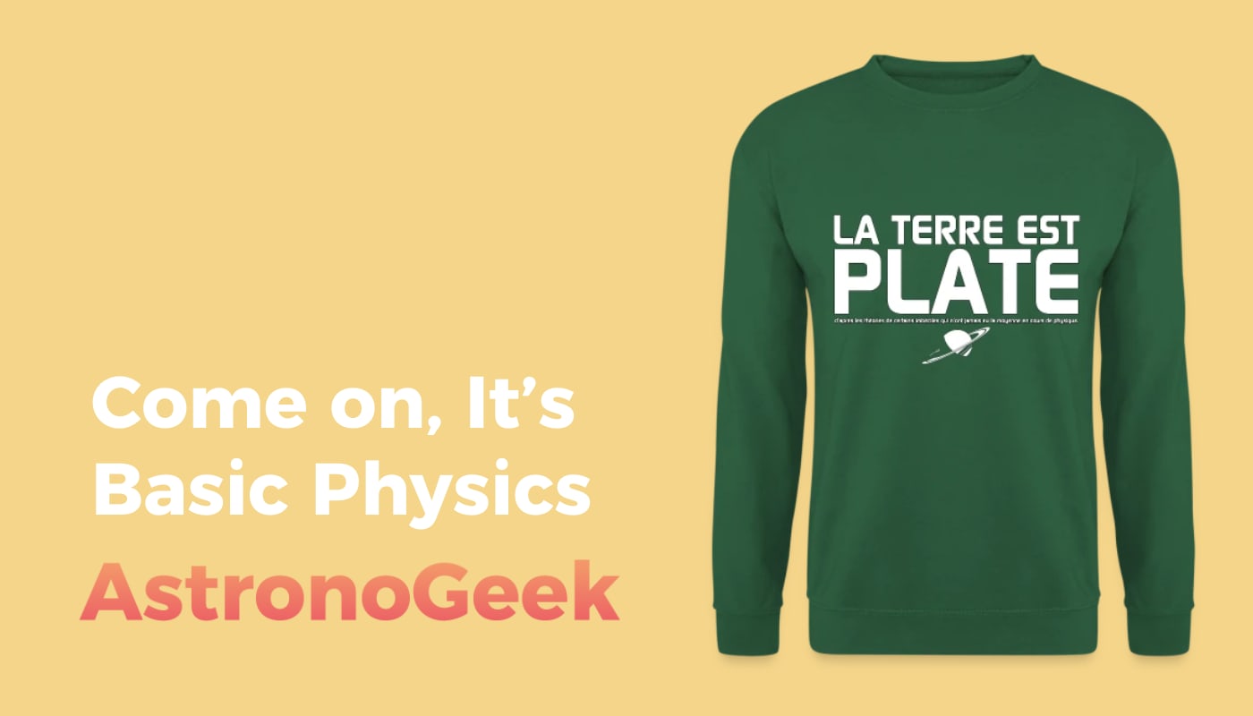 There’s also the slightly more aggressive slogan, here on a green sweatshirt – “The Earth is flat, according to some imbeciles who never passed physics”. Somehow it sounds nicer in the original French.