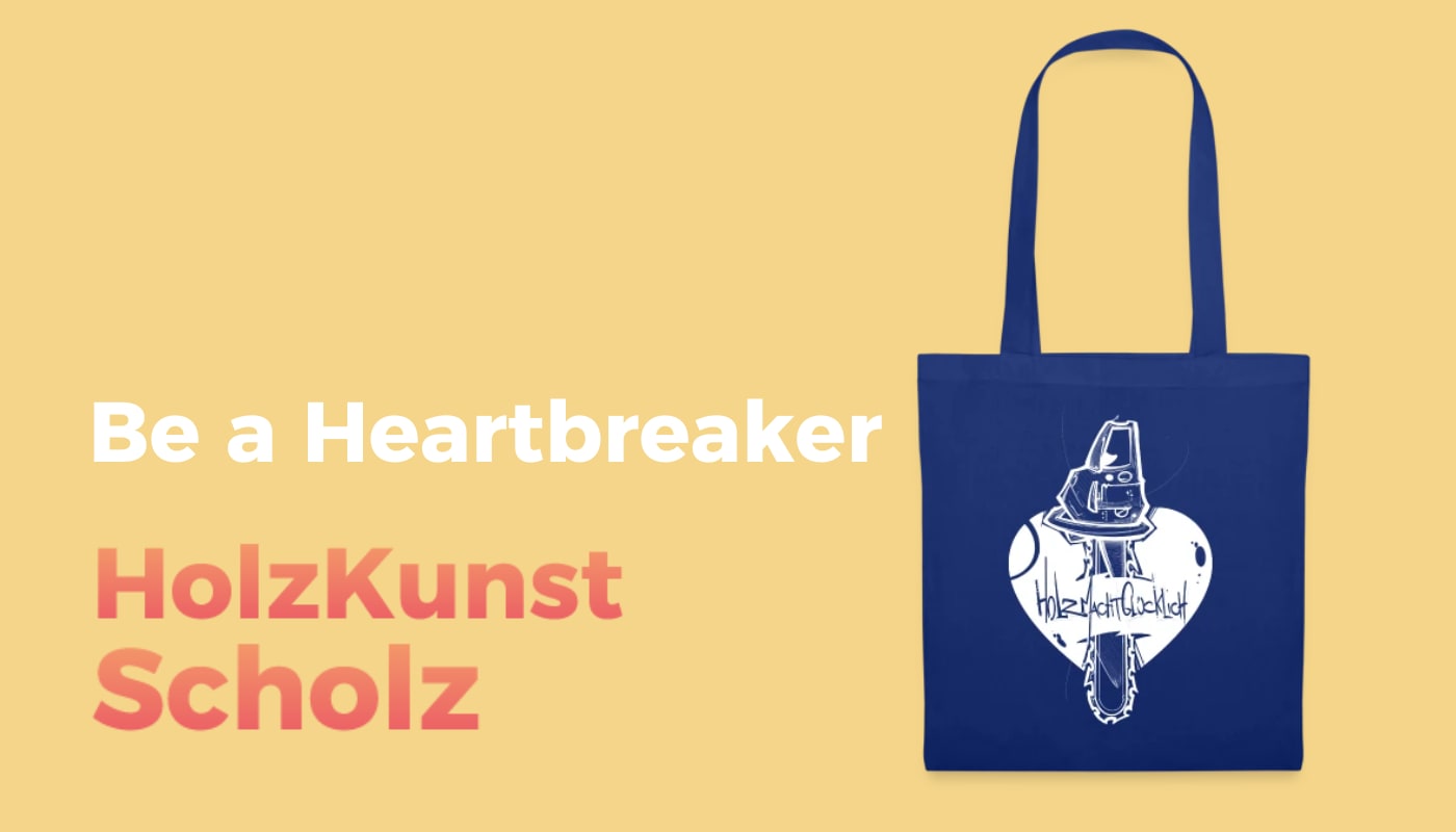 The designs in his Spreadshop are rustic, jagged, and look like they’ve been carved into the products themselves – like this tote bad featuring his iconic chainsaw logo.