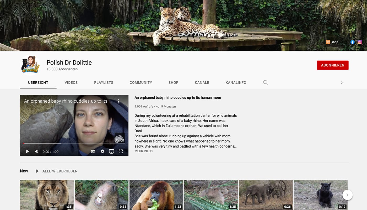 Gosia is an animal rescuer and hero to our furry friends, volunteering for years at wild animal rehabilitation centers and orphanages. Dubbed “The Polish Dr Dolittle”, her YouTube channel showcases her work saving, rehabilitating, and caring for over 100 species of mammals. You can follow her efforts on Facebook and Instagram, or – if you speak Polish – find out more about her educational outreach programs on her website.