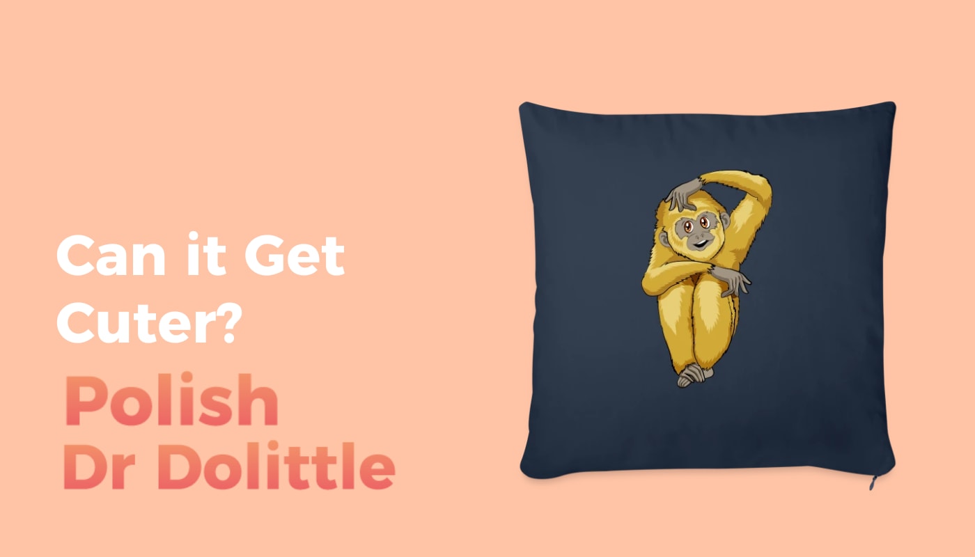 She also features individual animals – like this golden gibbon from the group shot, now starring in his own design on a pillow.